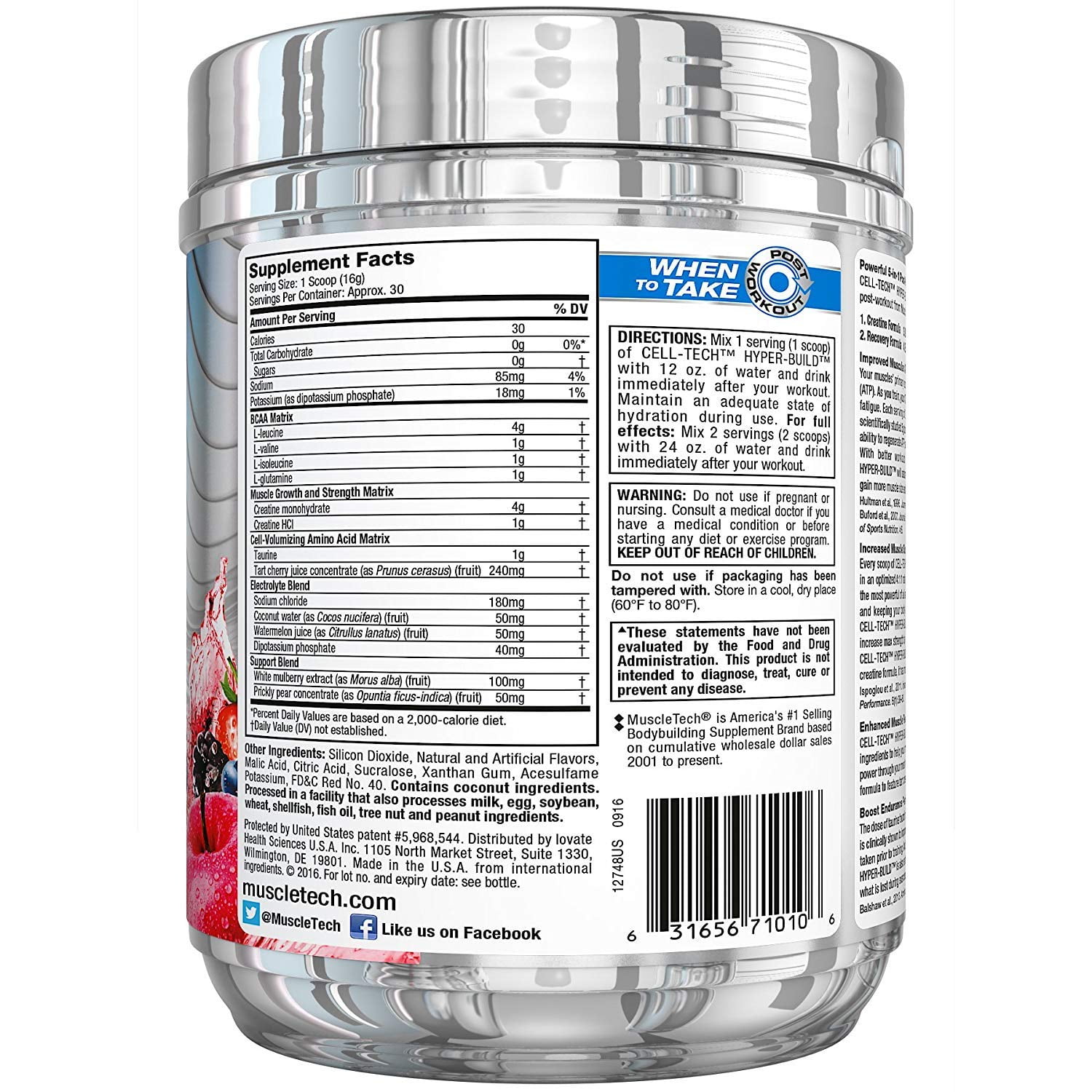 Mix 2 servings 2 scoops with 720ml of water and drink immediately after your workout. In fact the 4g dose found in CELL-TECH HYPER-BUILD has been scientifically shown to increase max strength by over 40 in just 12 weeks. Read here MuscleTech Reviews Benefits Side Effects Ingredients and How to use.