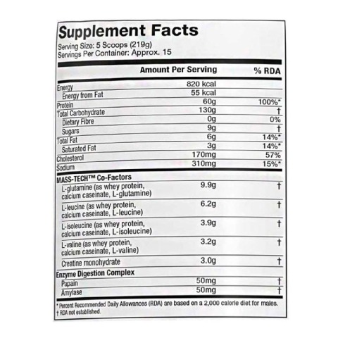 Enhanced with clinically proven creatine Each calorie-dense serving is enhanced with a huge ultra-pure 10g dose of the most studied form of creatine for even better gains in muscle and strength. Mass-Tech Elite features more protein per serving than competitors with 80g of multi-phase protein when mixed with 2 cups of skim milk. Of water or skim milk.